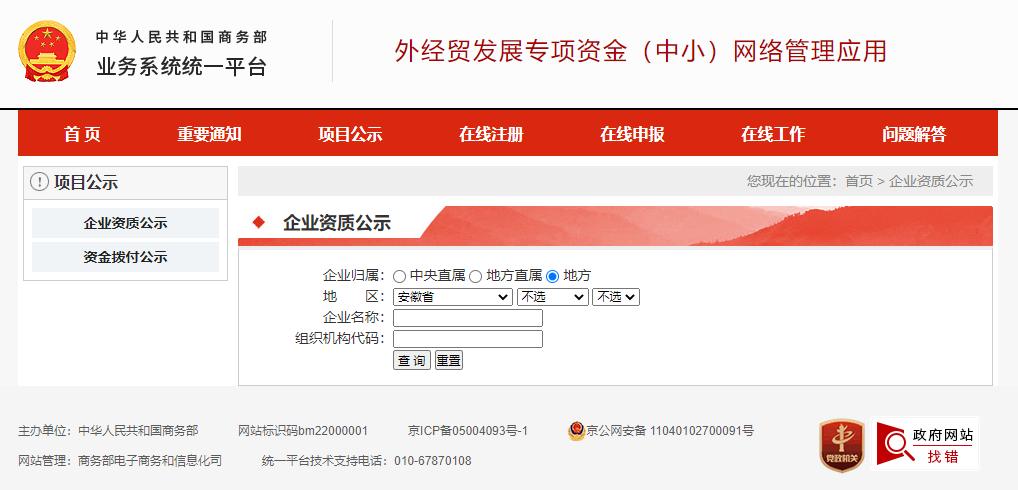 自2019年1月22日起,外貿發展專項資金(中小)網絡管理應用將納入商務部業務系統統一平臺,給您帶來的不便,我們非常抱歉。具體注冊登錄流程請參見《外貿發展專項資金(中小)網絡管理用戶注冊...
